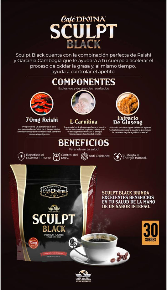 Vida Divina Sculpt Black Premium Coffee, Infused with Reishi, 3..5 Grams per serving